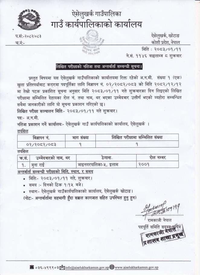 नायव पशु सेवा प्राविधिक पदको प्रथम पत्र र परीक्षाको नतिजा तथा द्वितीय पत्रको लिखित परीक्षा संचालन हुने सम्बन्धी सूचना ।