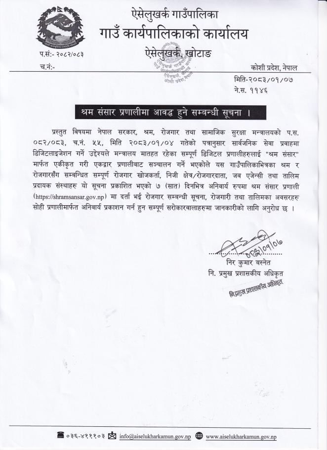 श्रम संसार प्रणालीमा आवद्व हुने सम्बन्धी सूचना ।