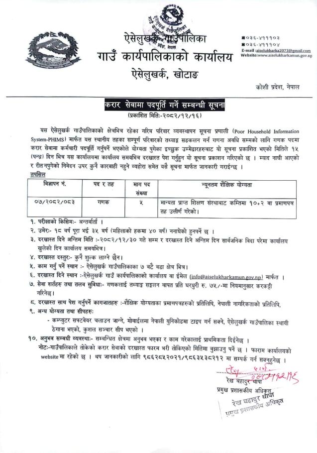 गणक पदपूर्ति गर्ने सम्बन्धी सूचना ।